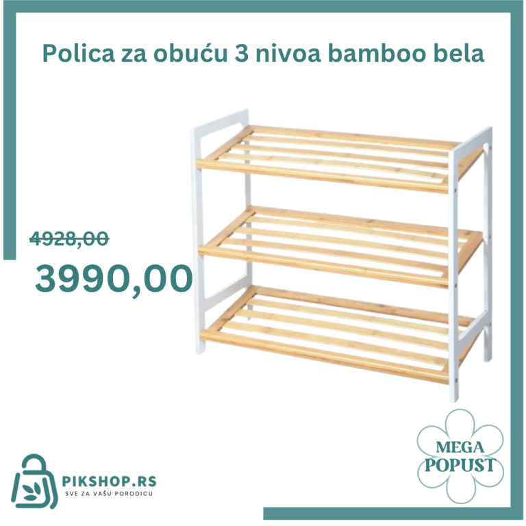 POLICA ZA OBUCU 4 NIVOA BAMBOO BELA