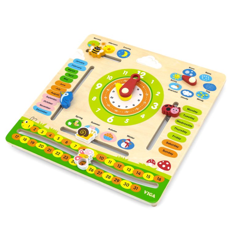 1.699,00 RSDPomerite elemente u obliku životinja kako biste istražili različite karakteristike kalendara: doba dana, dan u nedelji, mesec u godini, godišnje doba i datum. Mali crveni točkić može se koristiti za označavanje vrste vremena, dok brojčanik sata omogućava deci da prate tačno vreme. Ovaj fantastični drveni set pruža deci priliku da uče o danima u nedelji, mesecima u godini i još mnogo toga. Set uključuje klizni mesečni i dnevni grafikon, brojčanik za vremensku prognozu, kao i sat sa pokretnim kazaljkama, što ga čini savršenim alatom za razvijanje razumevanja vremena kroz igru