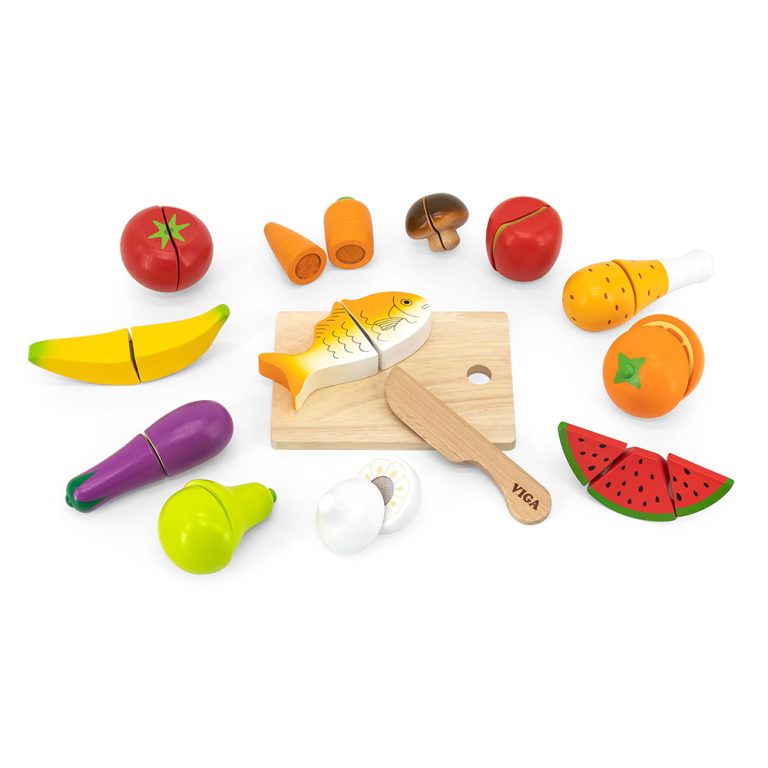 3.589,00 RSDDrveni Viga set za seckanje hrane pruža zabavu i edukaciju kroz igru. Set sadrži 12 elemenata u obliku voća, povrća, mesa, kao i drveni nožić i dasku za sečenje. Svaki element je sastavljen od dve polovine koje su povezane čičkom, a cilj igre je da deca koriste drveni nožić kako bi ih razdvojila. Kroz simulaciju seckanja hrane, deca ne samo da uče o vrstama hrane, već i razvijaju prepoznavanje polovinu i fine motorike.