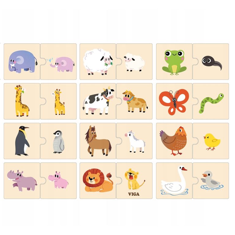 1.389,00 RSDViga set sa tematikom životinja, majke i mladunčeta. Set se sastoji od 24 drvenih kartica, 12 pari različitih životinja majke i mladunčeta koje je potrebno spojiti u slagalicu. Na ovaj način deca razvijaju mišljenje, upoznaju se sa različitim životinjama i uče o njihovim mladuncima. Podstiče finu motoriku i socijalnu inteligenciju.