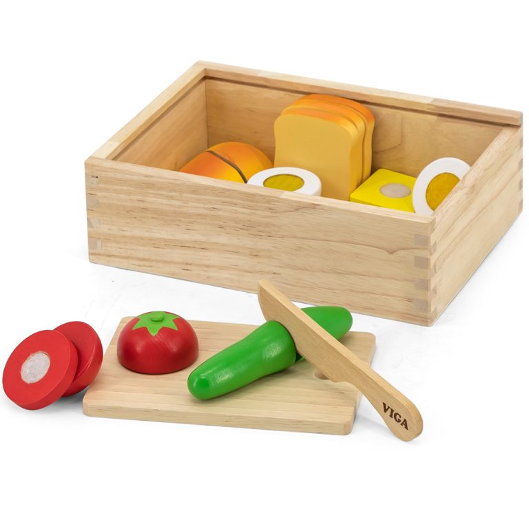 2.595,00 RSDMali kuvari sada mogu sa potpunom sigurnošću savladati tehnike rezanja i tajne kuvara i stvoriti svoje ukusne recepte. Drveni set za doručak kompanije Viga uključuje dasku za sečenje i nož, tako da dete razume sečenje hrane na dva ili više komada, dok istovremeno razvija koordinaciju pokreta ruku i oka.