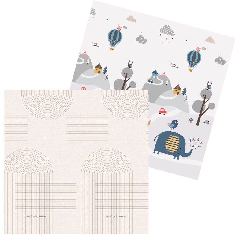JOY sklopiva podloga sa dva lica Grey Deco+Slon u planini 150x200x1 cm