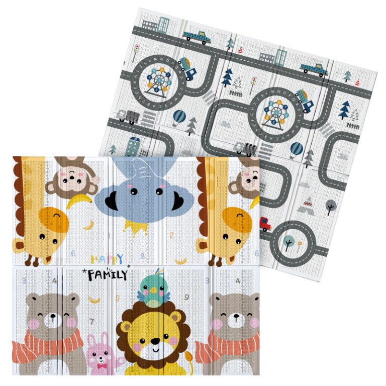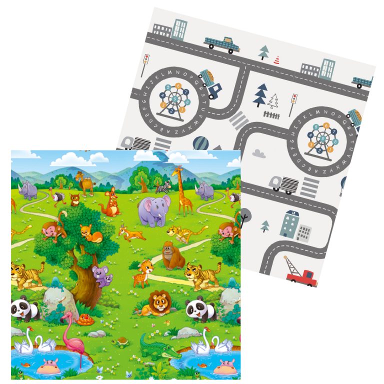 JOY sklopiva podloga sa dva lica Staza + Velike životinje 180x200x1 cm