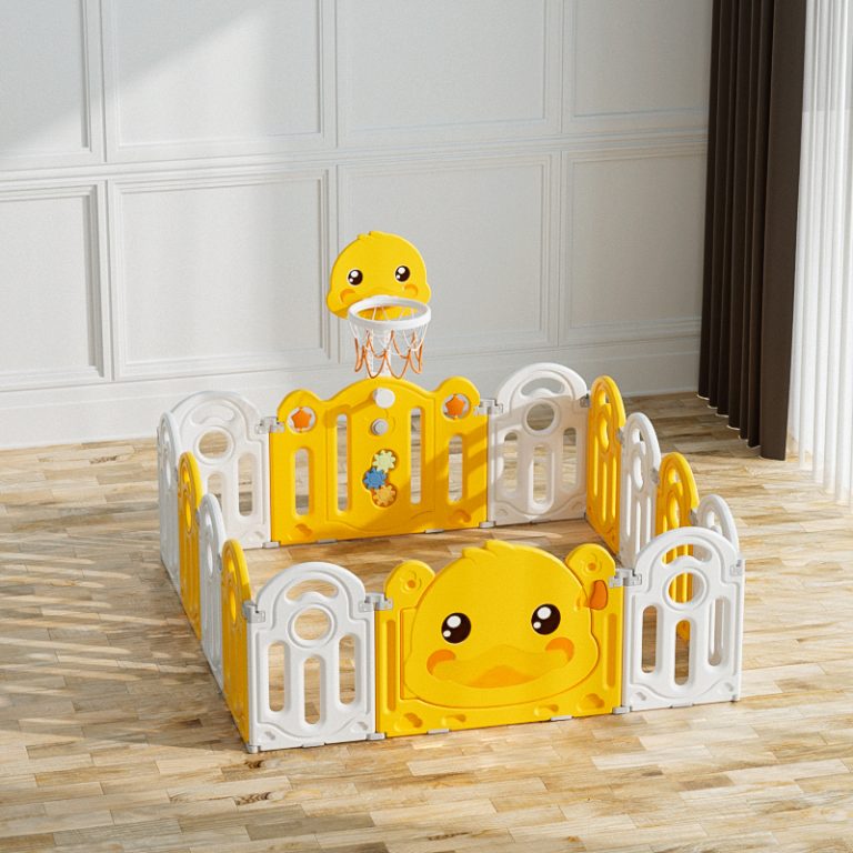 Sklopiva ogradica sa košem „Pače“ 160*166 cm (žuta+bela boje)