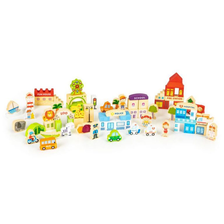 DRVENE EDUKATIVNE KOCKE CITY SA PODLOGOM 115 KOMADA